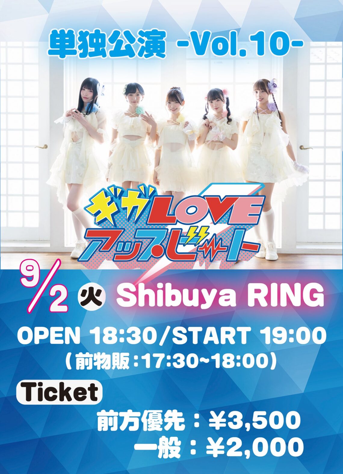 前方エリア (Sチケット)¥3,500 一般エリア(Aチケット) ¥2,000 入場時ドリンク代が別途かかります。