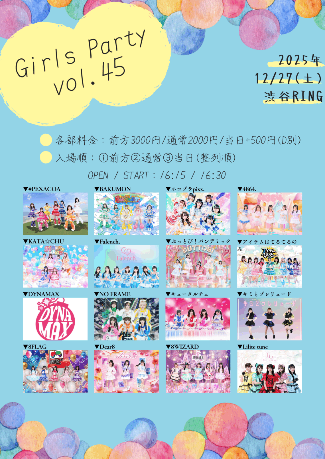 ▶出演 :ネコプラpixx、ぶっとび!パンデミック、BAKUMON、4864、アイテムはてるてるのみ、KATA⭐︎CHU、DYNAMAX、#PEXACOA、NOFRAME、