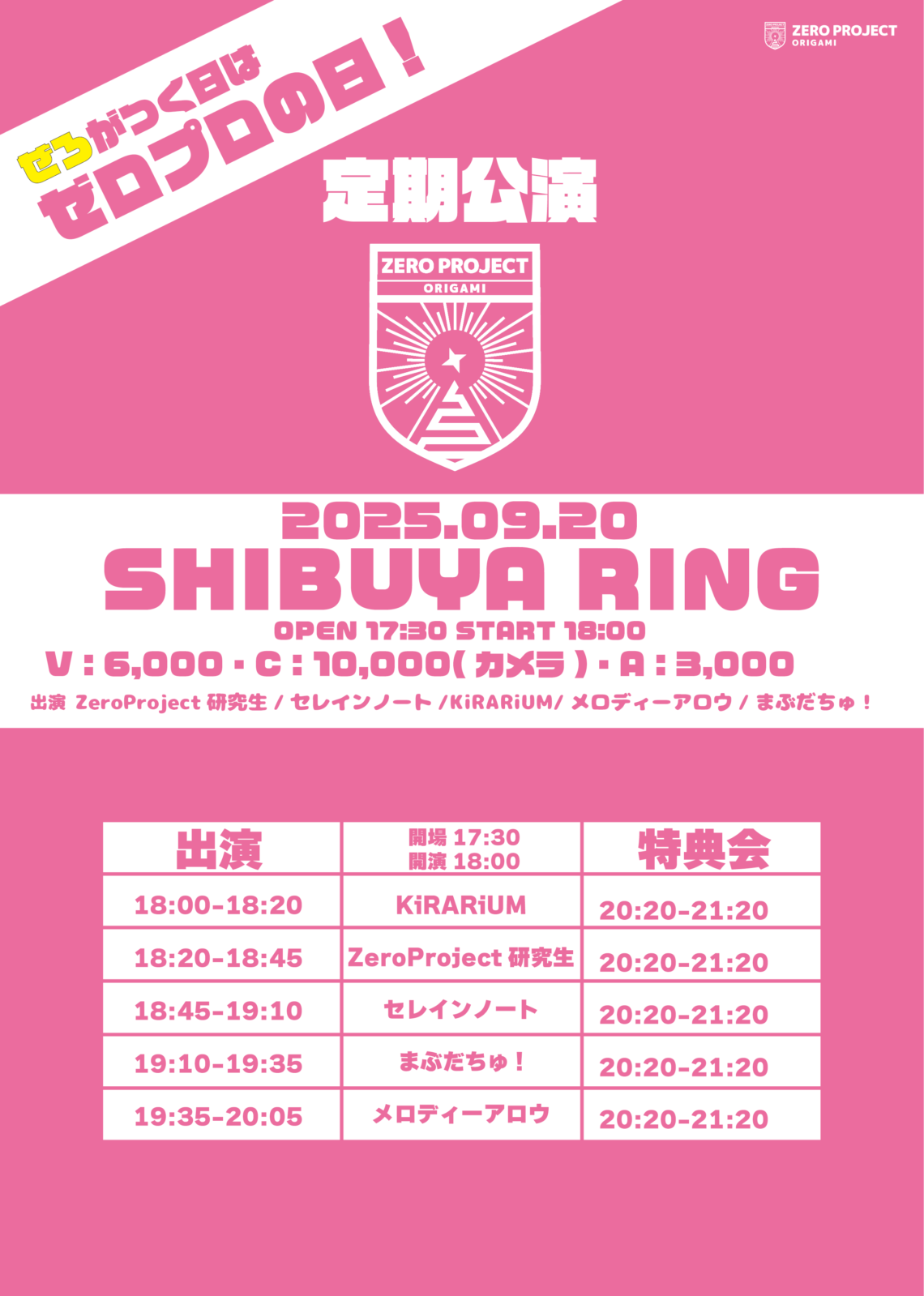 9月20日(土) Zero Project 定期公演 @SHIBUYA RING 〒150-0043 東京都渋谷区道玄坂2丁目21−7 2F/3F 第8矢澤ビル
